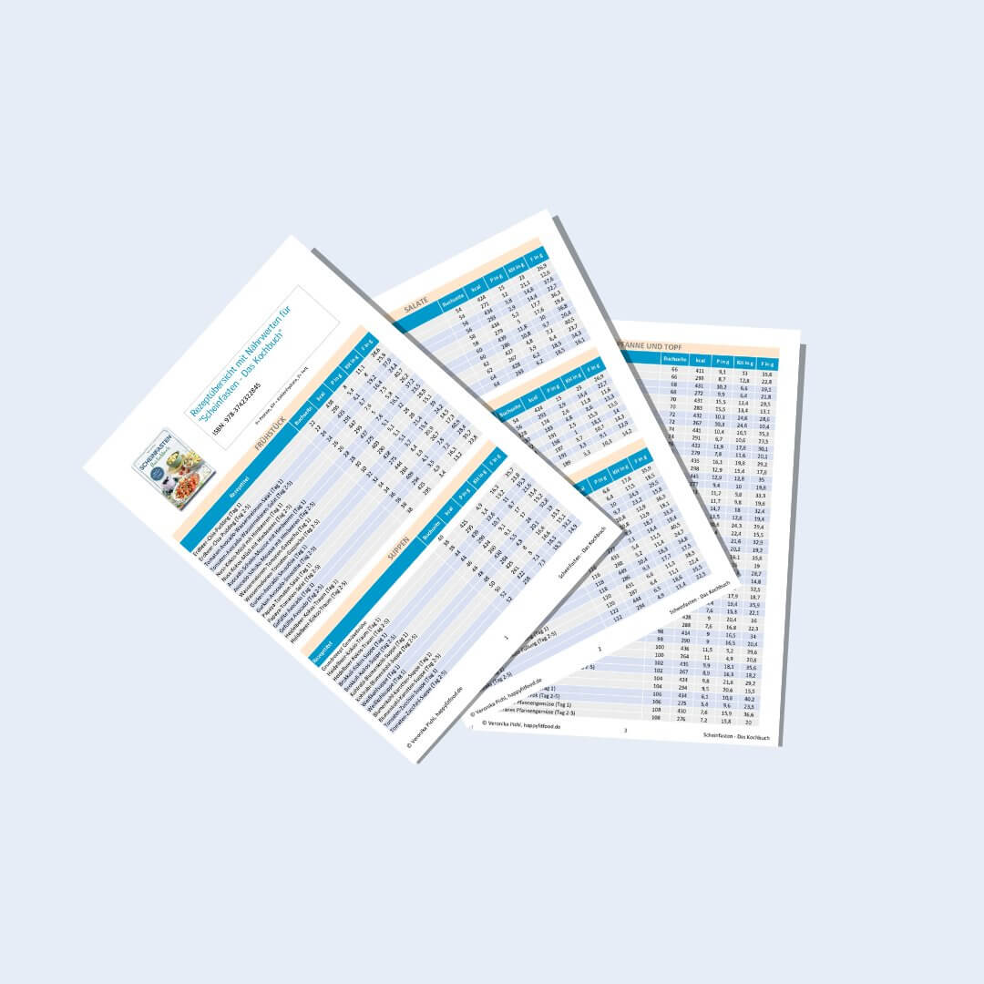 Rezeptübersicht zum Buch mit Nährwerten als PDF zum Download.
